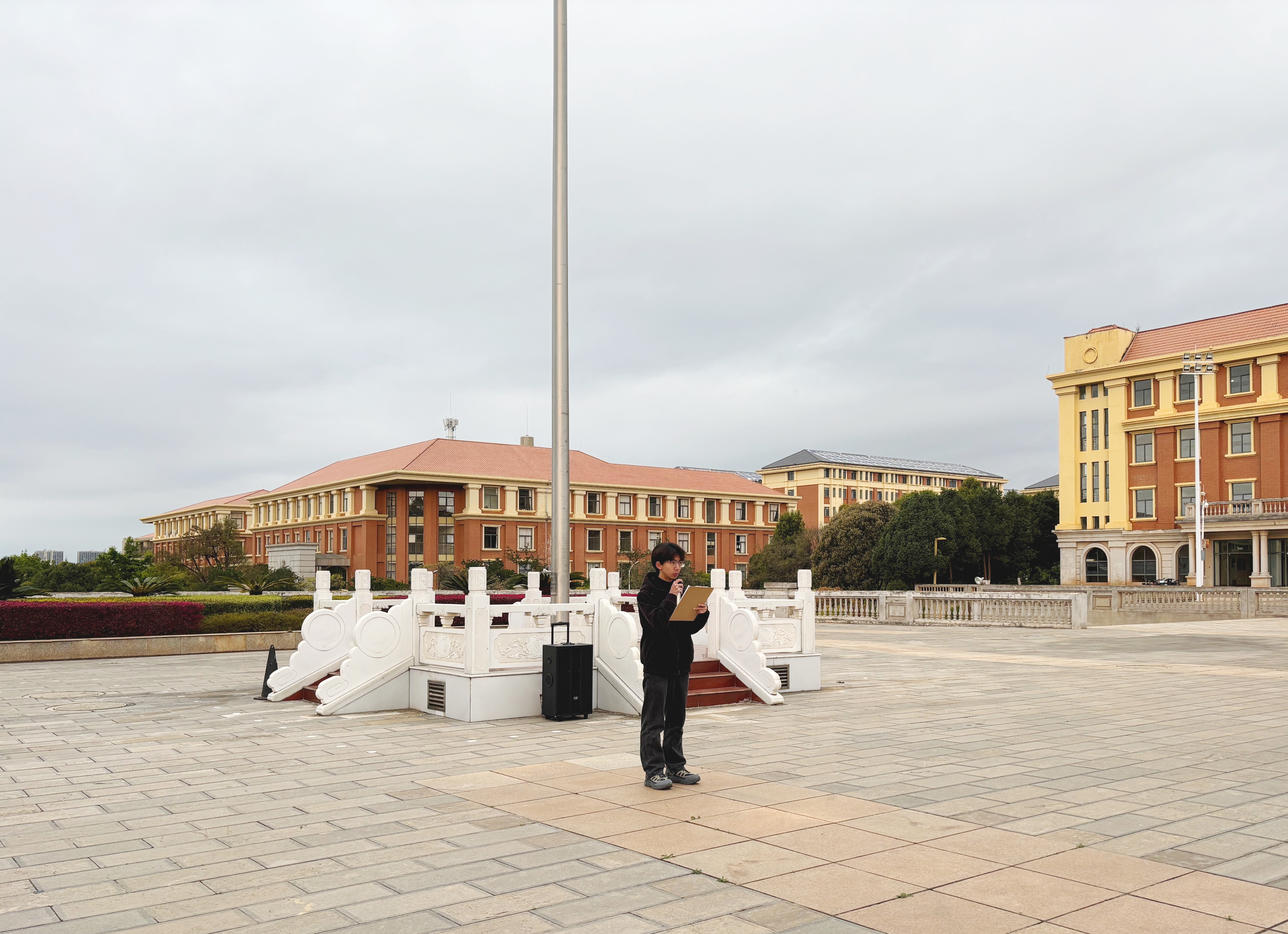 早晨7时30分,文典广场上全体师生整齐列队,肃立以待。伴随着雄壮的国歌声,鲜艳的五星红旗冉冉升起,全体师生面向国旗行注目礼,现场气氛庄严肃穆。在国旗下,永利3044集团官网员工代表黄泰喆进行了题为《以青春之名,向生命致敬》的演讲,表达了新时代药学学子肩负的责任与使命,号召全体同学以爱国之心、报国之志,勤奋学习、勇于创新,在云大书写属于当代青年人的“本草新篇”。